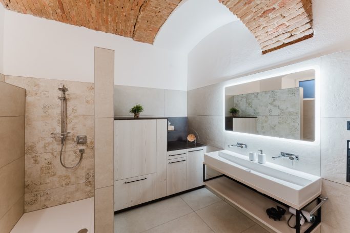 Unsere stilvolle Ferienwohnung begeistert mit historischem Charme, Ziegelmauern und kunstvollen Kreuzgewölben.